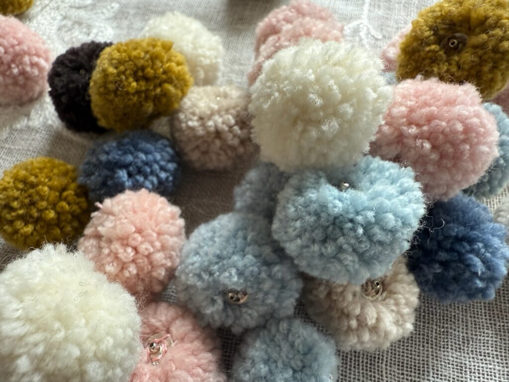DIe finken sind auch mit wollpompoms in diversen farben erhältlich